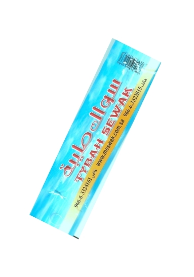 Produit au Pakistan. D’après Ali Ibn Abi Talib : le Prophète nous a ordonné d’utiliser le Siwak et a dit : « Lorsqu’une personne se lève pour prier, un ange se place derrière elle pour écouter le Coran et se rapproche. Puis il ne cesse d’écouter et de se rapprocher, jusqu’à poser sa bouche sur celle de la personne. Ainsi, il n’est pas un verset qu’elle lit sans qu’il ne soit dans le corps de l’ange. » Authentique par d’autres voies (Sahih li Ghayrihi), Albani, Silsila Sahiha, n°1213.